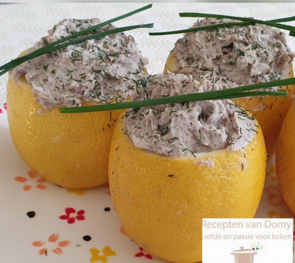 Lekker fris voorgerecht. Laat de sardientjes goed uitlekken. Snijd de bovenkant van de citroen en de rand aan de onderkant. Met een mes snijd langs de rand aan de binnenkant en verwijder het vruchtvlees. Doe dit met alle citroenen. Bewaar wel 2 eetlepels citroensap apart. Prak de sardientjes met een Lees verder...