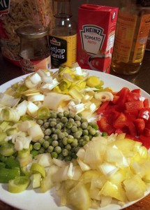 Zelf verzonnen recept met lekkere hete runderreepjes met groenten in de wok… Snijd de bos uitjes en de prei in ringetjes. Snijd de ui en de paprika in blokjes. Laat de doperwtjes ontdooien. Maak het vlees klaar. Snijd de gember bolletjes en de knoflook fijn en Lees verder...