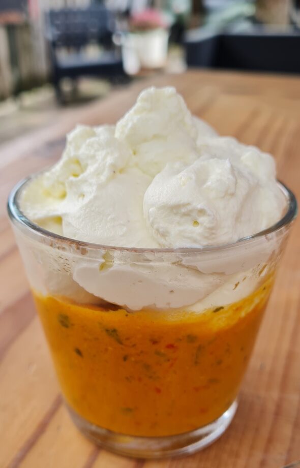 Een chic voorafje of een leuke amuse. Je kan de soep tot 2 dagen van tevoren maken en in de koelkast zetten. De smaken trekken samen en worden beter en de soep is heerlijk koud. ! Denk erom, de basilicum blaadjes moeten een nacht in de slagroom trekken. Je Lees verder...