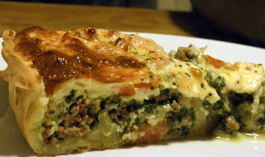 Spinazie en deeg ontdooien volgens gebruiksaanwijzing. Oven voorverwarmen op 200 °C of gasovenstand 4. Taartvorm invetten, bekleden met bakpapier en daarna bekleden met deeg. knoflook en ui fijn snijden. Tomaten in schijven snijden. Eieren loskloppen met crème fraîche, zout en peper. In een koekenpan met anti-aanbaklaag gehakt rul bakken. Voeg Lees verder...