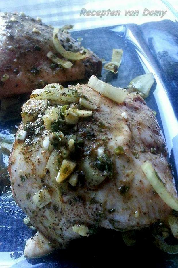 Lekker marinade voor kip. Het vlees wordt lekker mals. De kruiden geven een heerlijke smaak aan het vlees! Snijd de knoflook en de ui fijn. Meng alle ingrediënten samen in een kom. bedek de kom met een plastisch folie en laat in de koelkast, 2 uur marineren. Nu mag je Lees verder...
