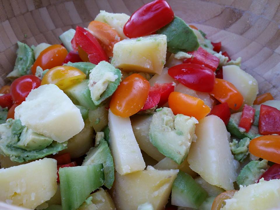 Kook de aardappelen met schil in ruim water met zout, 20 minuten. giet ze af en zet ze een uur in de koelkast. Snijd de paprika in blokjes. Schil en snijd de komkommer in blokjes. Snijd de avocado’s in blokjes. Halveer de tomaatjes. Pel de aardappelen en snijd ze grove Lees verder...