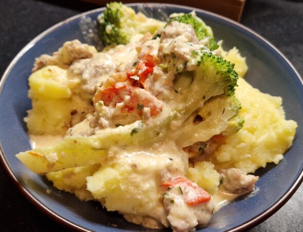 Heerlijk recept. Simpel en snel. Snijd de broccoli in roosjes. Kook de roosjes beetgaar in ruim water met een Groentenbouillon blokje. Giet ze af en laat ze uitlekken. Pel en snijd in blokken de aardappelen, kook ze, ongeveer 15 minuten in ruim water met zout. Snijd de ui fijn, de Lees verder...