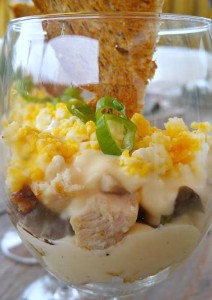 Nog een recept van verrine, een heerlijke salade Caesar in een glas! Het is mijn eigen recept. Rooster de boterhammen in de broodrooster of in een koekenpan, goudbruin. Halveer een knoflook teentje en wrijf er de boterhammen mee. Snijd de boterhammen in driehoeken. Snijd de lente uitjes in ringetjes. Rasp Lees verder...