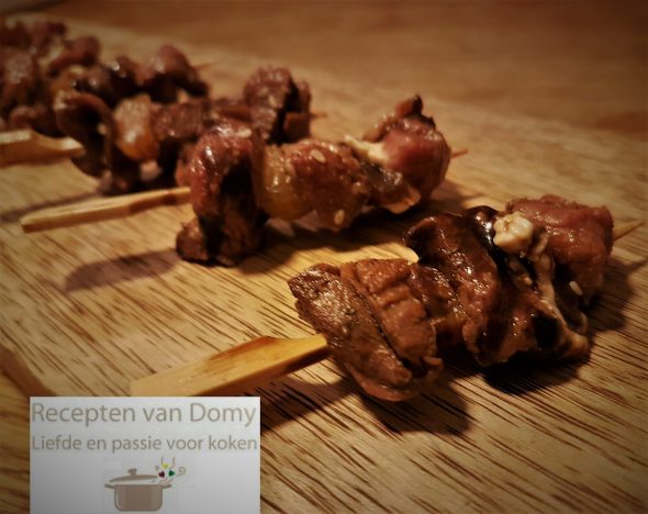 Zelf verzonnen recept van mini spiesjes met eendenborst. Deze spiesjes zijn koud geserveerd. Snijd de abrikozen in stukken. Snijd de dadels in ringetjes. Smeer een beetje kaas op elk ringetje. Meng in een kom, de soja saus, de honing, de balsamico crème, de sesam zaden en de frambozen azijn. Breng Lees verder...
