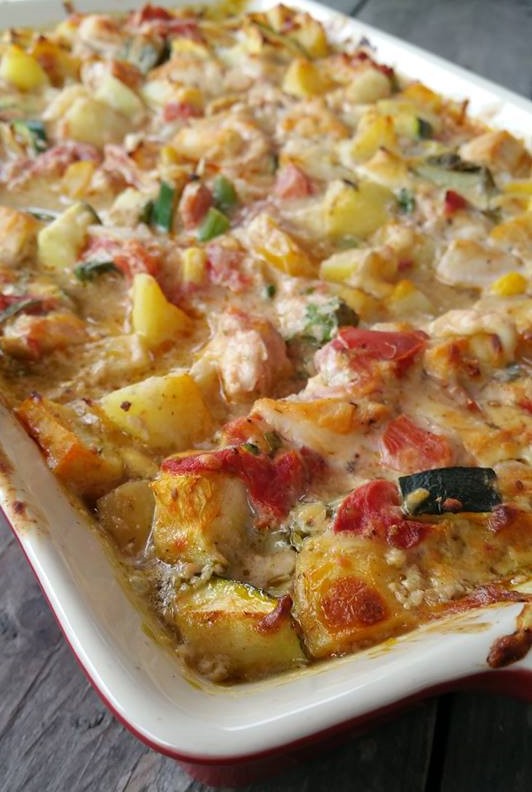 Een heerlijke romige schotel met pesto, groenten, kip en aardappelen. Snijd de aardappelen in blokken. Snijd de courgette in blokken. Snijd de ui en de knoflook fijn. Hak de basilicum. Snijd de kipfilets in kleine blokken. Kook de aardappel blokken in ruim water met zout, maximum 10 minuten. Giet ze Lees verder...