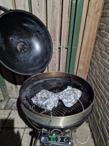 Vouw de folies goed dicht en leg ze op het rooster. Stoom de spareribs nu 2 uur zodat ze botermals worden.