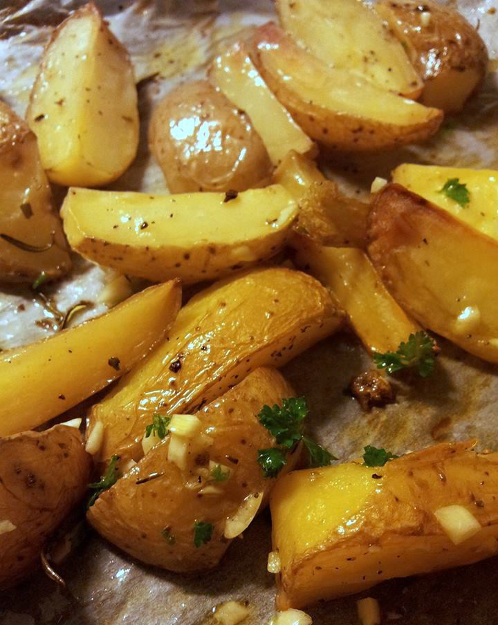 Bak ca. 40 min. in de oven tot de aardappelen goudbruin zijn.