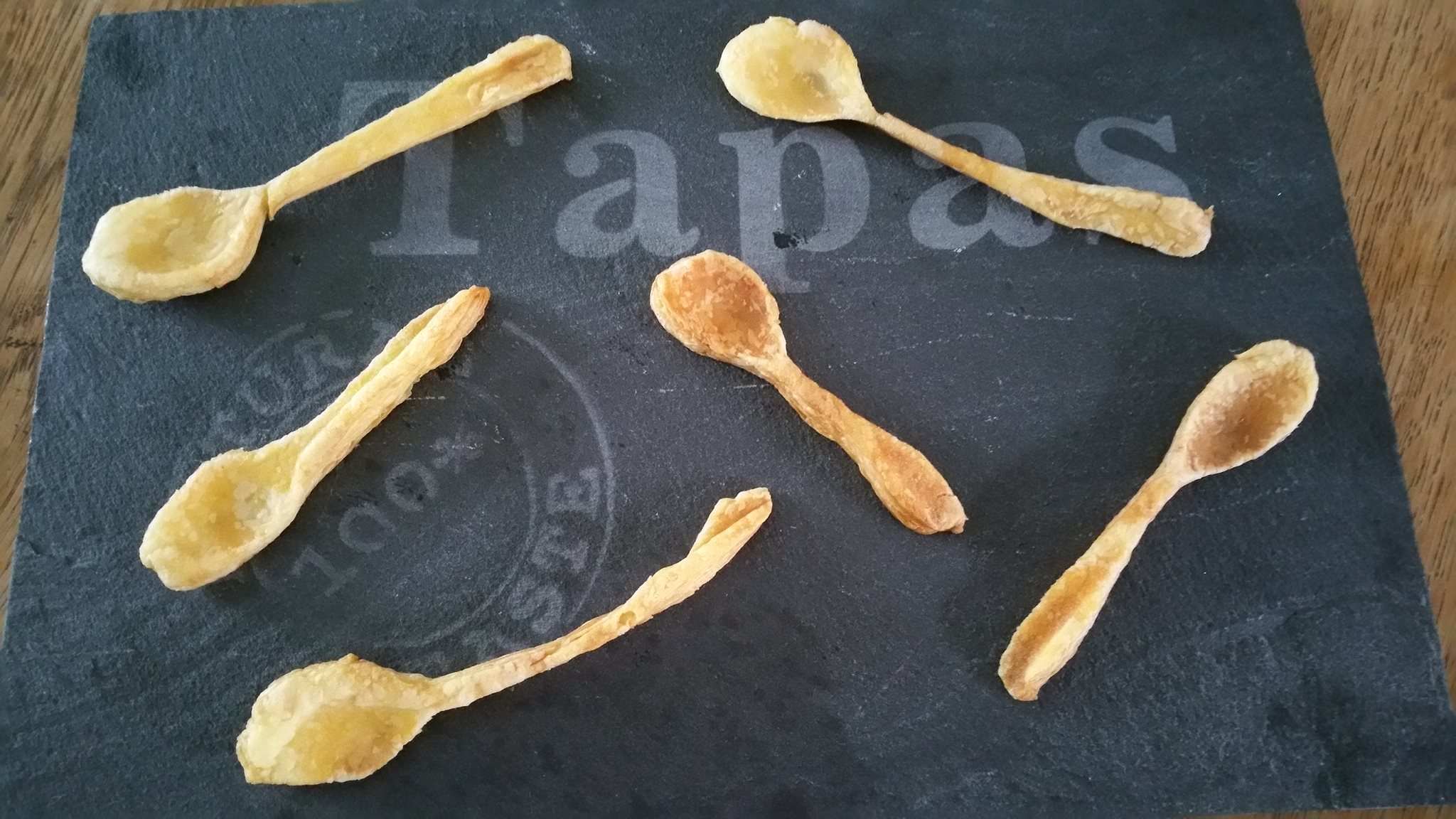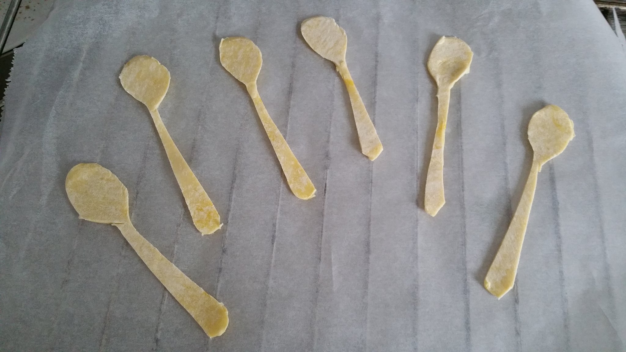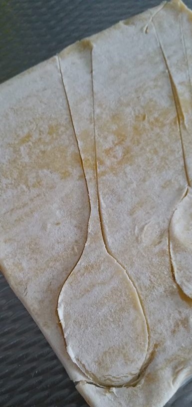 Zet de gemaakte lepels van bladerdeeg op een ovenplaat bekleed met bakpapier.