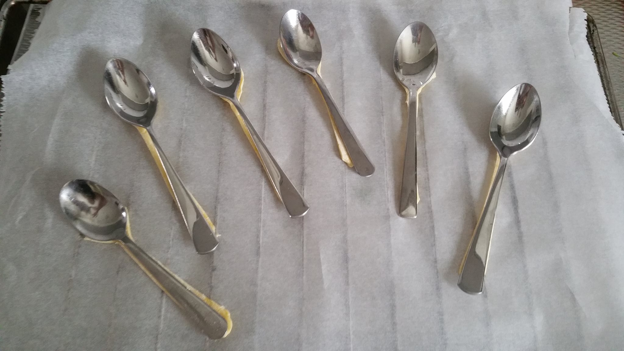 Leg twee theelepels naast elkaar op het deeg.