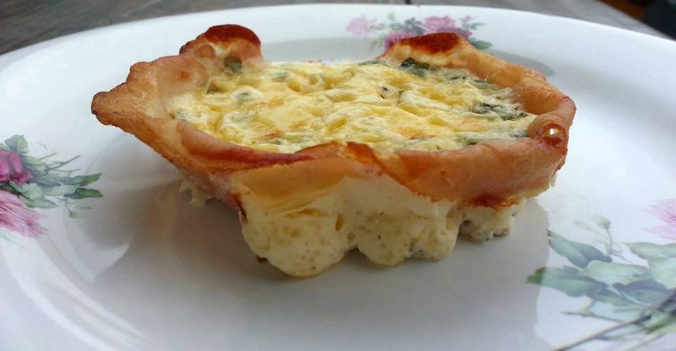 Zet de bacon taartjes ongeveer 15 minuten in de oven totdat het eimengsel helemaal gestold zijn.