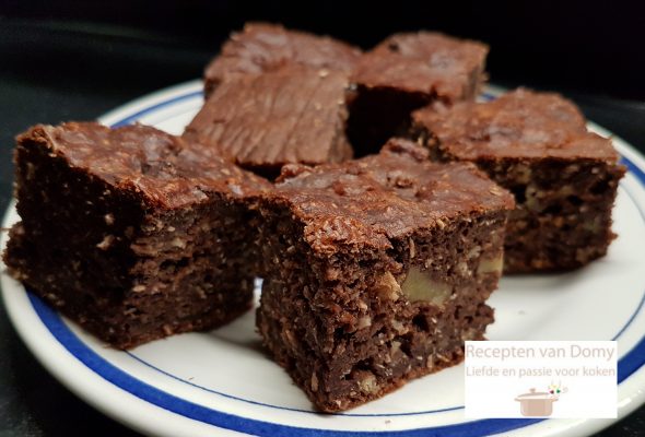 Wel rekening houden dat de cake in een brownies bakvorm sneller kan bakken.