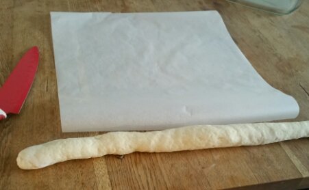 Rol het deeg met je handen tot je lange stuk deeg hebt.