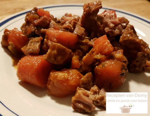 Zet de deksel op de pan en laat 3 uur stoven op een laag vuur.