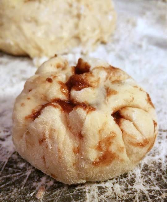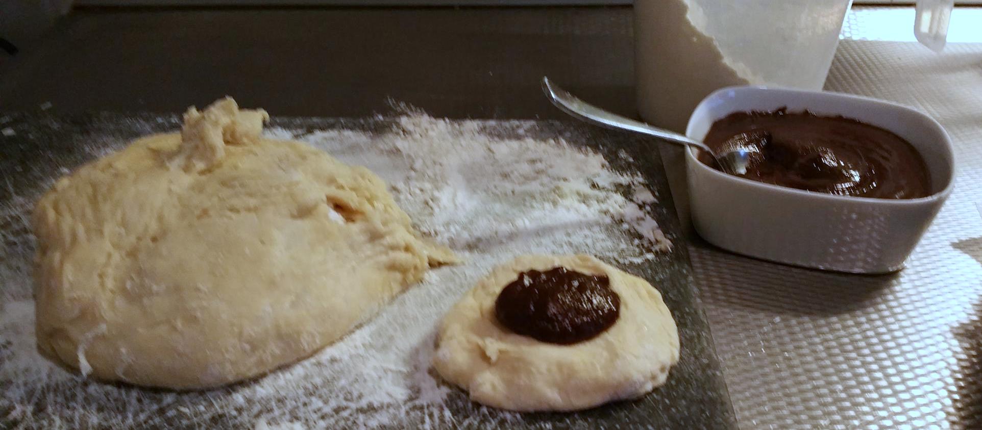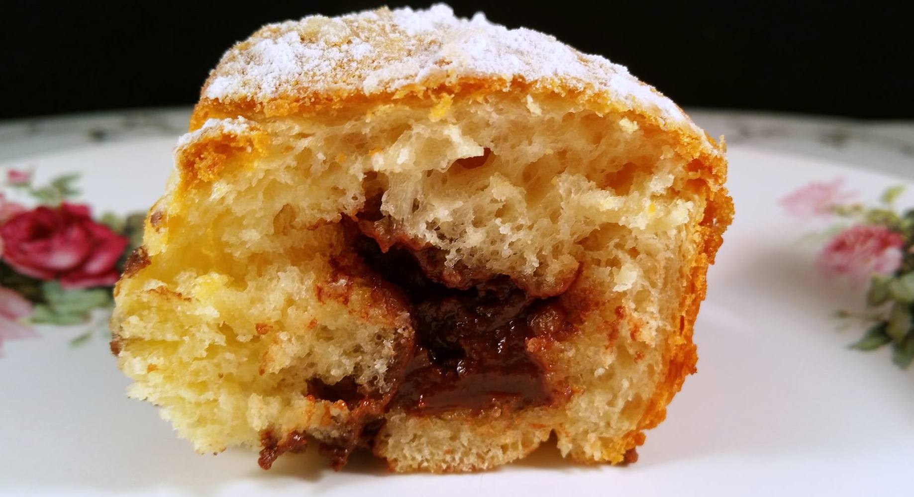 Heerlijke brioche (zoete Franse brood), gevuld met chocolade creme (Ganache).