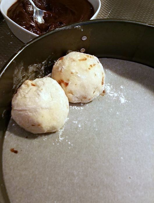 Wrijf u handen met olie en maak een bol met het deeg, (het plakt maar dat is normaal).