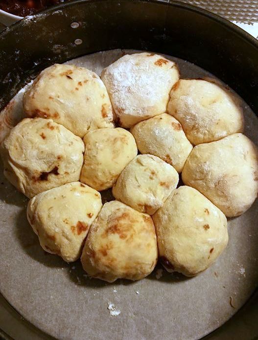 Leg de bolletjes in een springvorm bekleed met bakpapier naast elkaar, in de vorm van een bloem.
