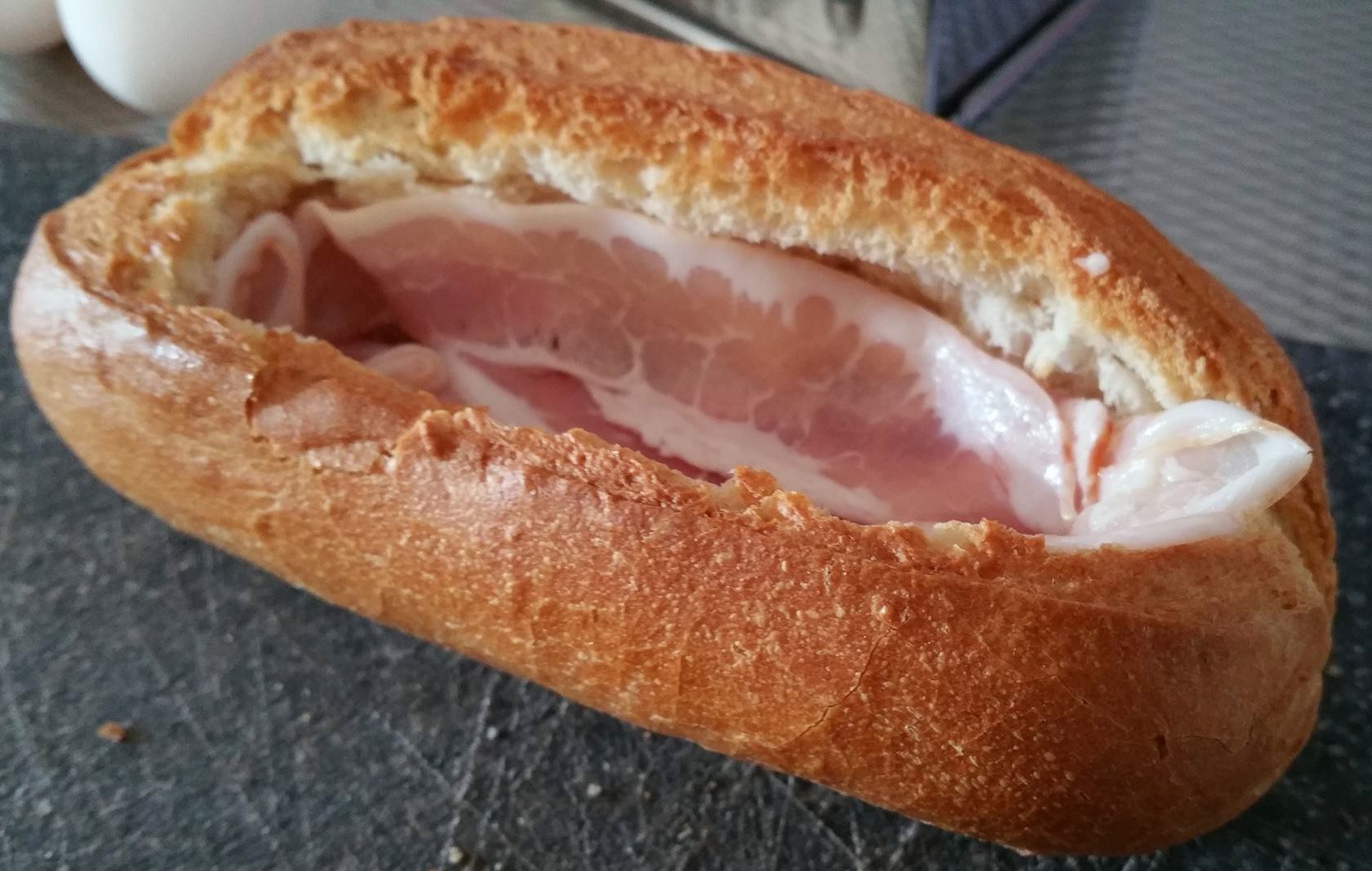 Leg een plakje bacon in het broodje.