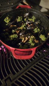 Bak de mosselen op een temperatuur van 200°C tot de mosselen beginnen te openen (+-5 min).Besprenkel de mosselen met extra picada en plaats nog 1 minuut terug op de BBQ voor het serveren.