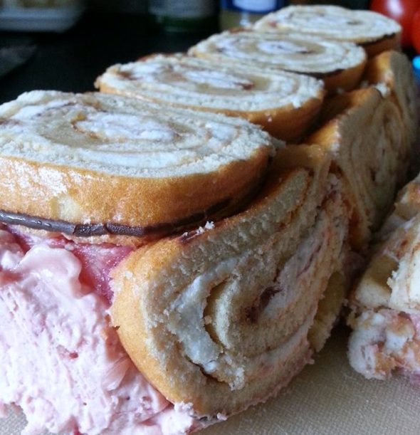 Je kan zelf de cakerollen maken maar als je geen tijd hebt, met die kant en klare cakerol is het ook lekker.