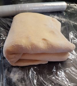 Leg de boter op het deeg, vouw het deeg 3 keer, rol het uit en vouw het nog eens 3 keer.