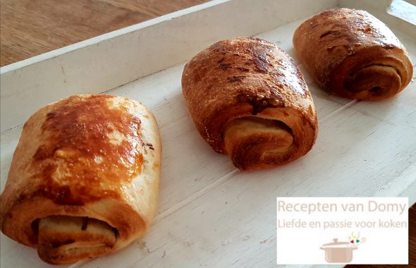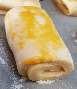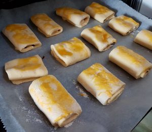 Zet de chocolatines op een bakpapier, besmeer ze met het eierdooier en laat ze in de oven op 30 fraden, 30 minuten rijzen.