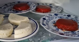 Giet de pannacotta erin, laat het afkoelen, zet een film erop en zet het in de koelkast voor 4 uur.