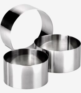 Snijd daarna met de kookring 4 rondjes in de mozarella pannacotta.