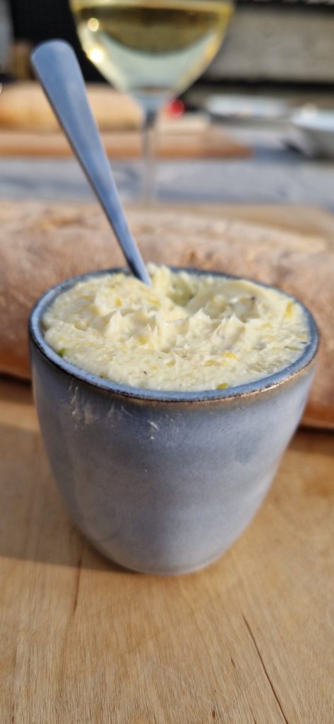 Voeg de geroosterde knoflook toe aan de boter en roer alles goed door elkaar.