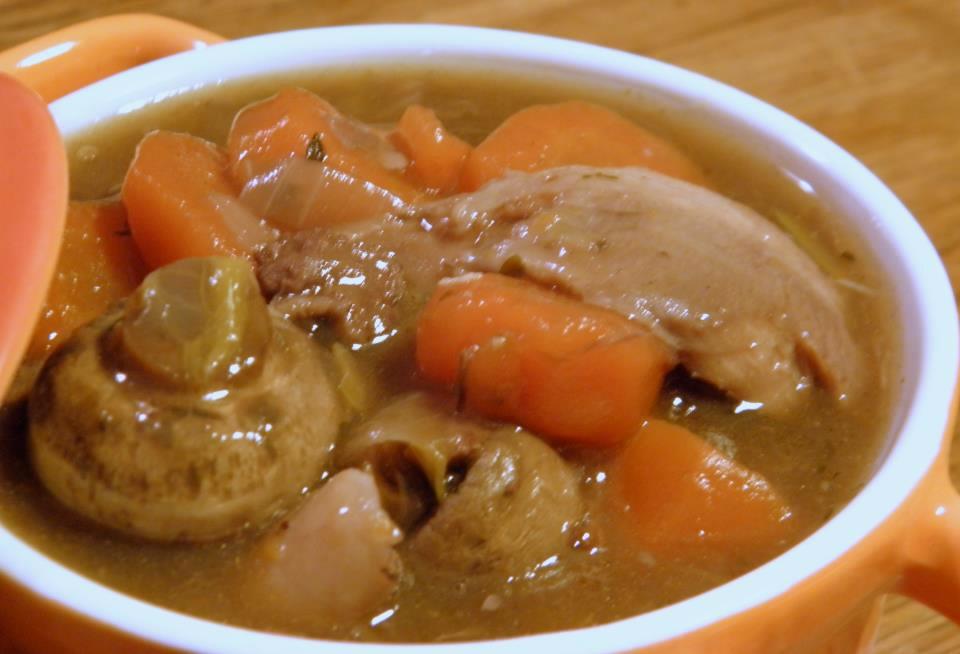 Kip afgedekt in ca. 50 minuten zachtjes gaar stoven.
