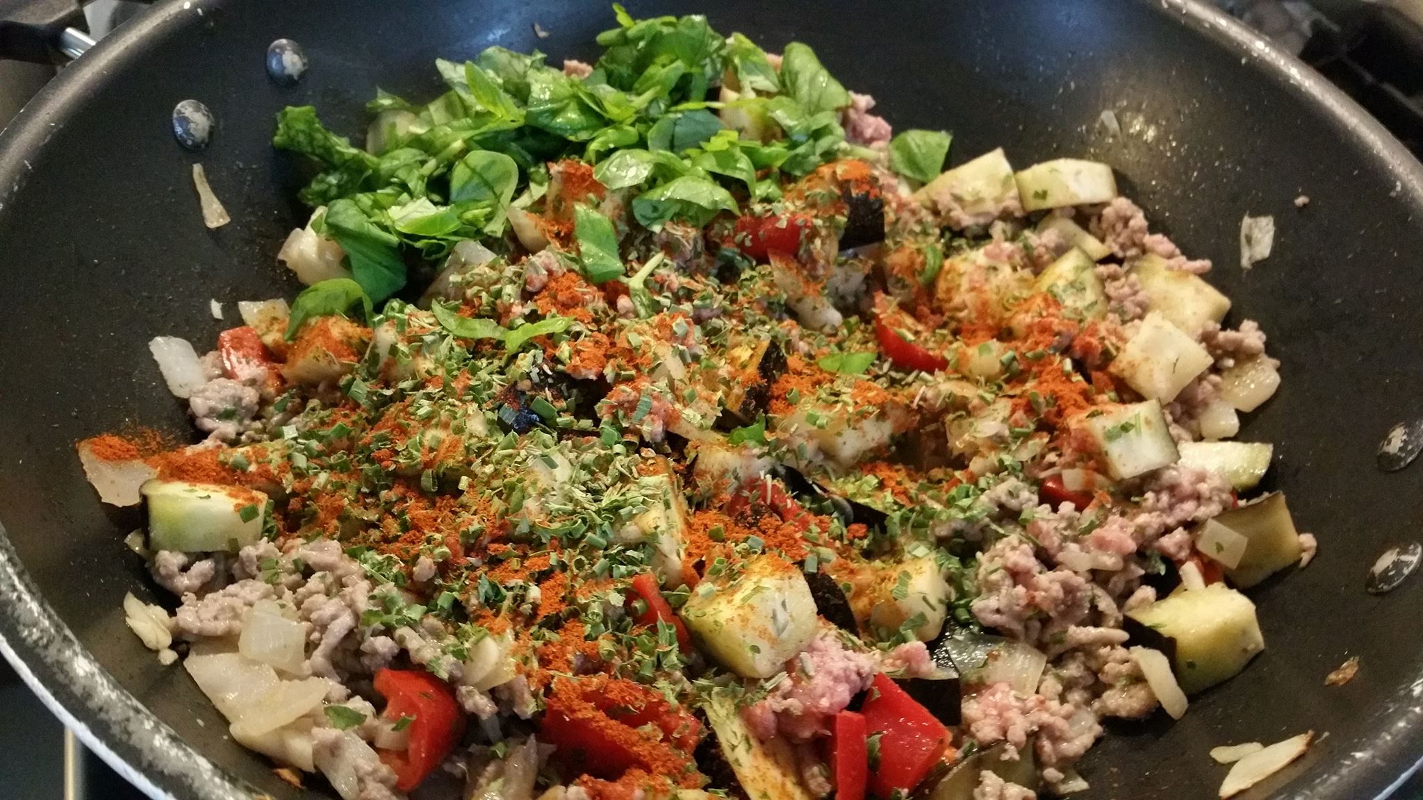 Voeg nu het gehakt en bak tot het bruin wordt.