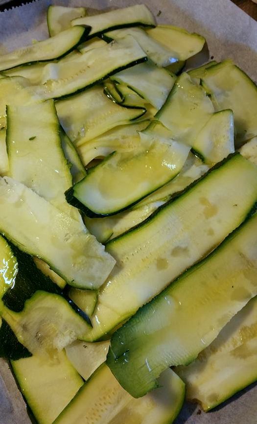 Snijd de courgettes in de lengte met een kaasschaaf.