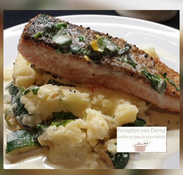 Serveer met 2 eetlepels room per persoon op de zalm.