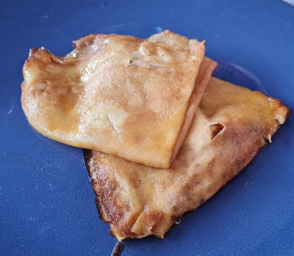 Eind van je maaltijd, doe de Crêpes in vieren vouwen.