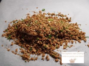 Strooi wat brood bovenop en bedek met een nieuw vel bakpapier.
