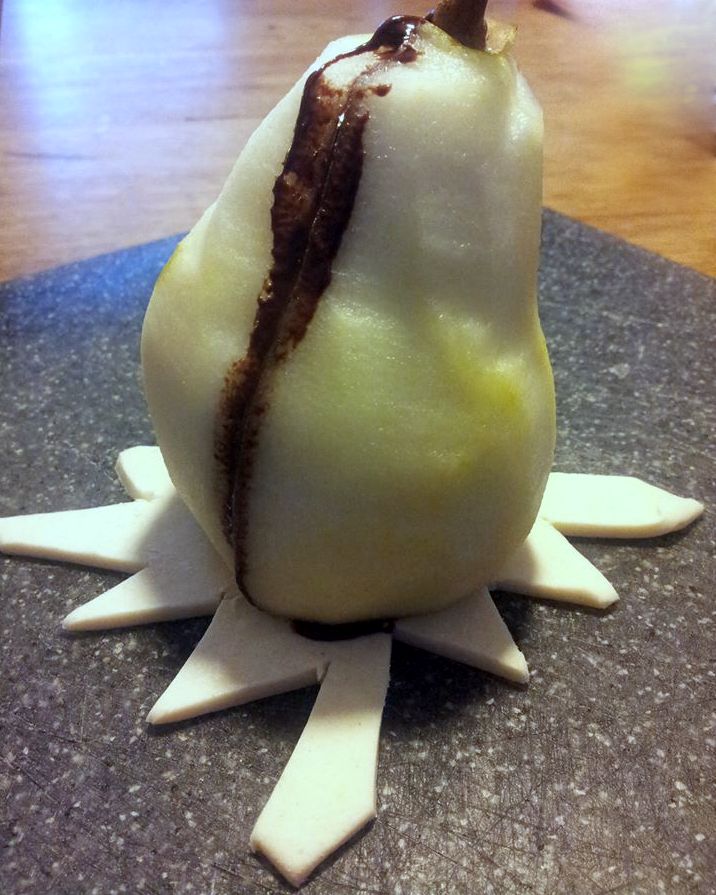 Snijd de onderkant van de peren af, zo kunnen ze recht blijven staan.