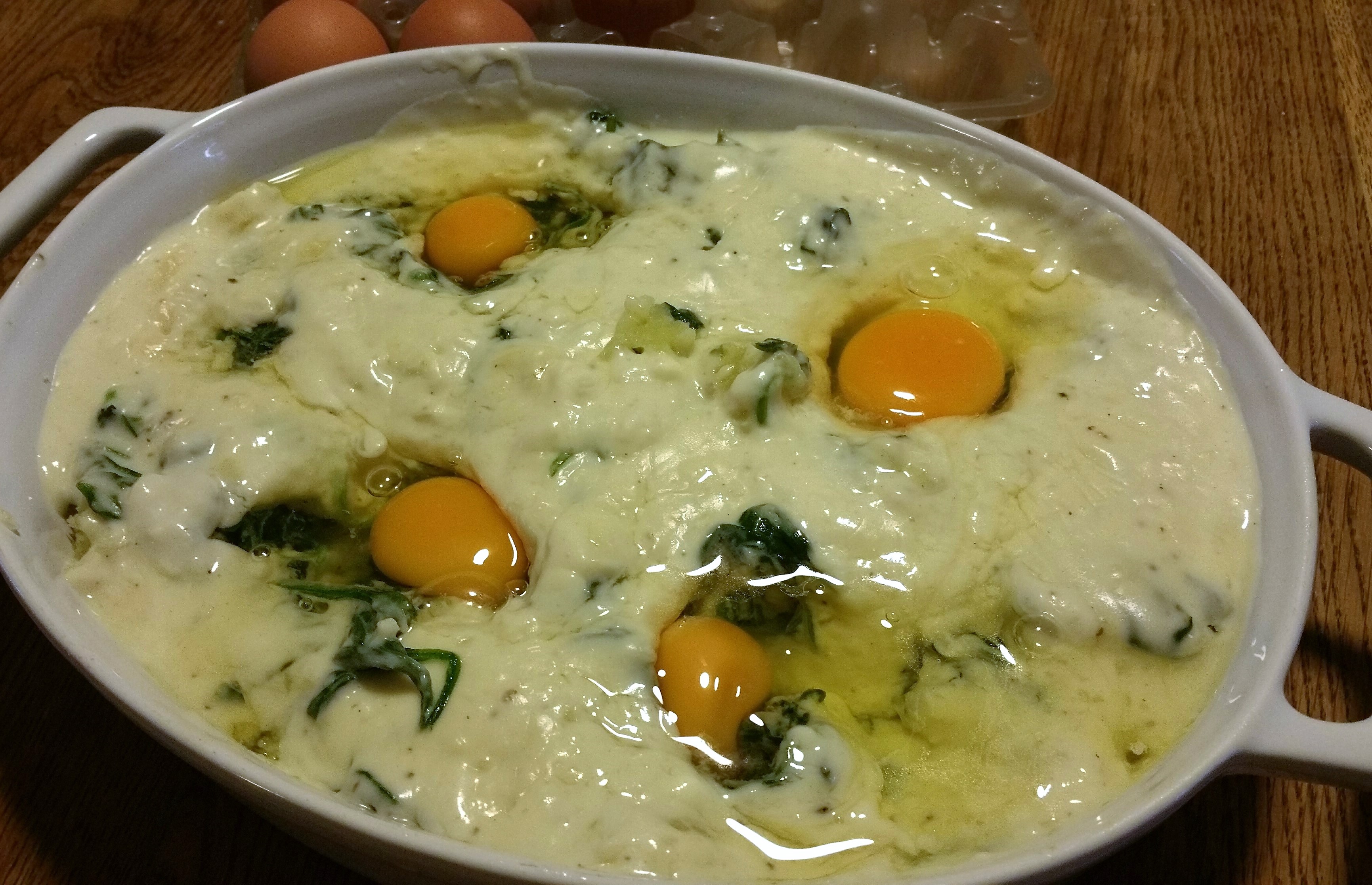 Florentine eitjes is een heerlijk vegetarisch recept van eitjes op een bed van spinazie en Bechamel saus, gegratineerd in de oven.