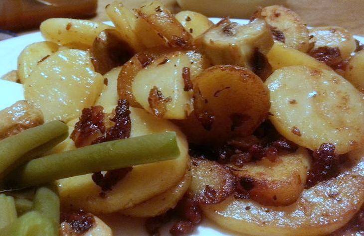 Bij het bakvet nog wat olie toevoegen en de aardappelschijven bakken.