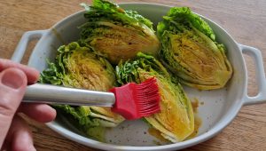Smeer wat Ras el hanout olie met behulp van een kwast op de little gem.