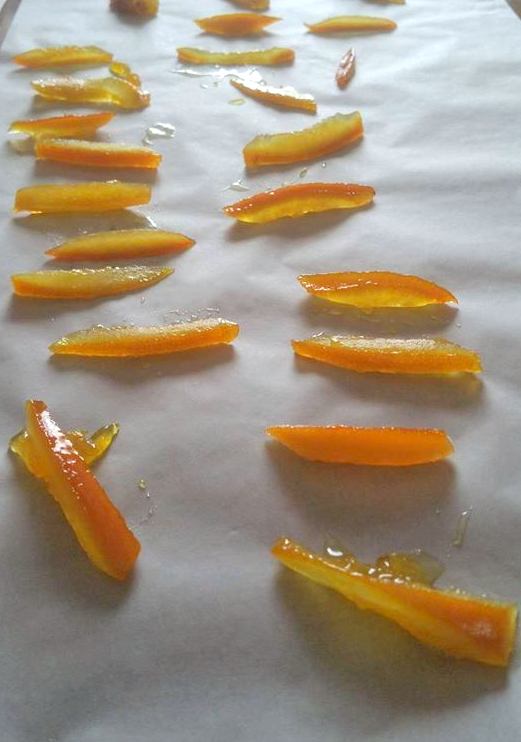 Als je wil orangettes maken, maak nu een ganache saus en dop de reepjes of plakjes in de saus.