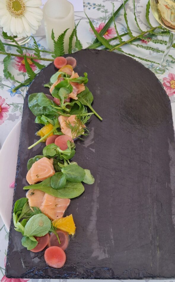 Heerlijke zalm , 2 dagen gemarineerd in Jus d’orange en Pastis.