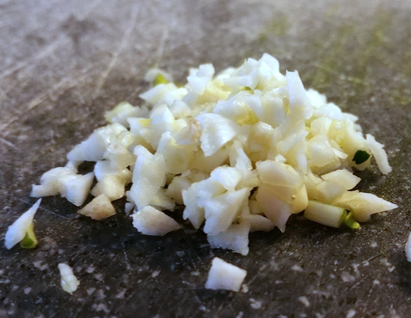 Hak de knoflook fijn.
