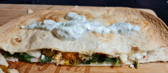 Serveer de wrap met Tzaziki erop.