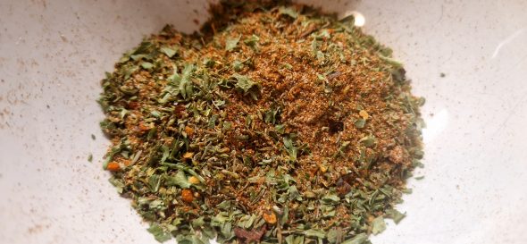 Meng alle ingrediënten samen en bewaar de kruidenmix in een afgesloten potje.