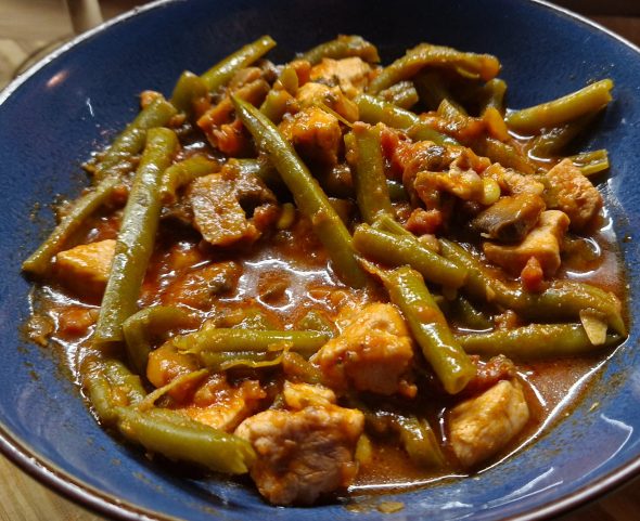 Krachtige smaken voor dit heerlijk pannetje met kip, champignons en sperziebonen.