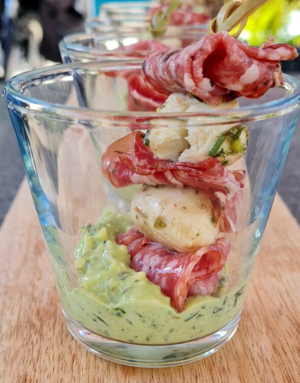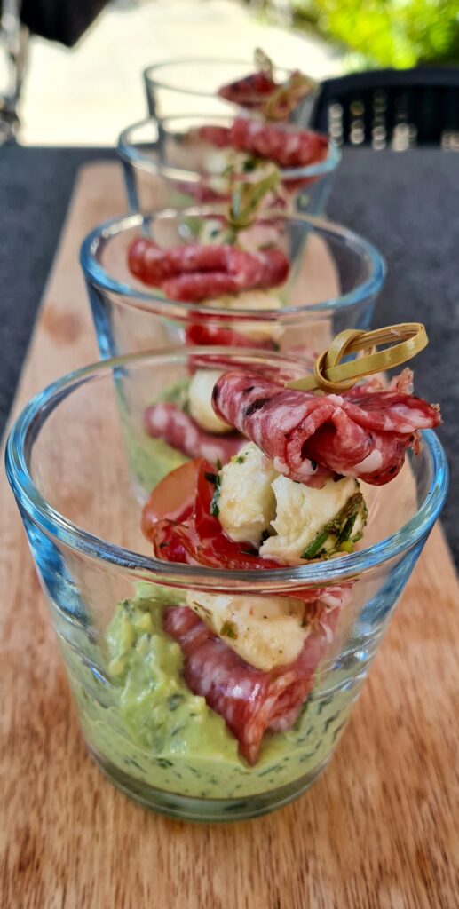 Bedekt tot gebruik met folie en zet de jarcuterie glaasjes in de koelkast.