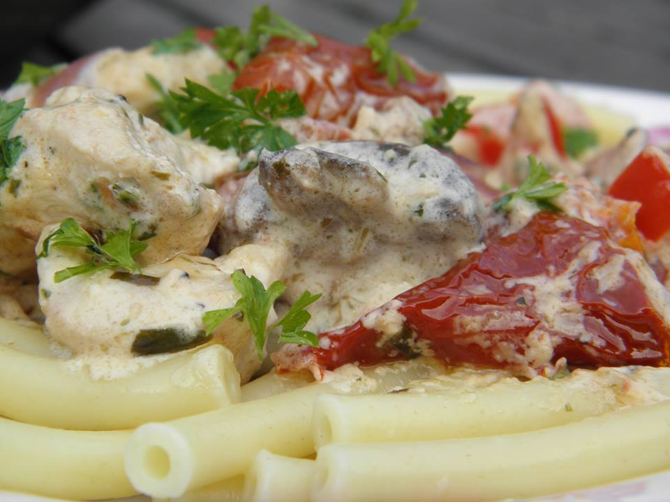 Je kan die saus met pasta, rijst of aardappelpuree serveren.