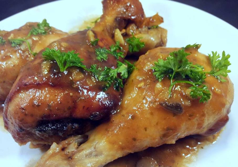 Zet in de oven op 160 graden, 45 minuten tot de drumstick gaar zijn en tot de saus is ingedikt.