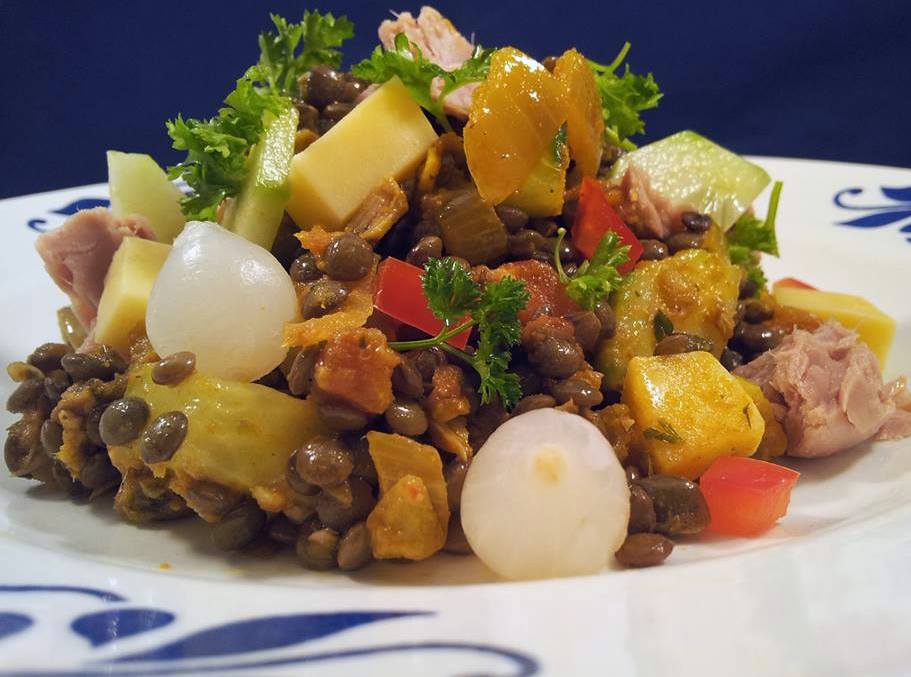 Lekkere kruidige salade met kurkuma en komijnzaad.