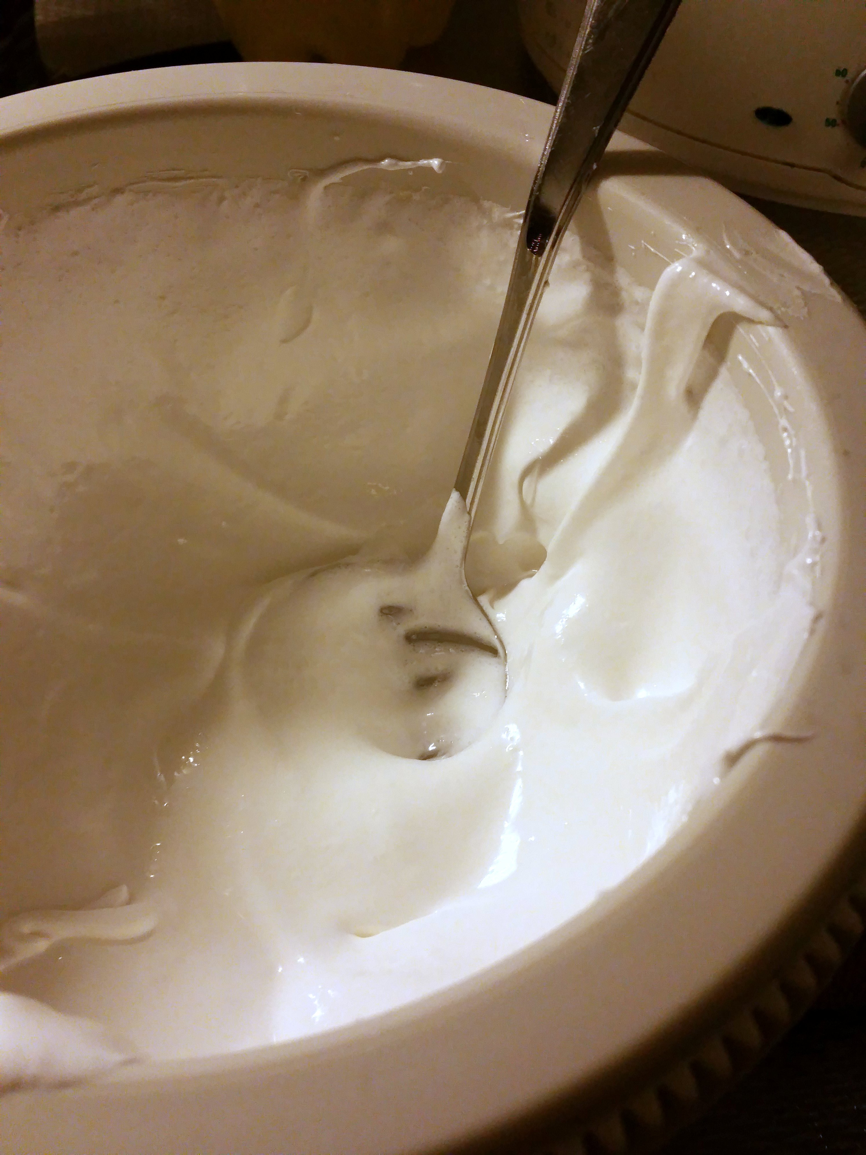 Ga door met kloppen tot het mengsel helemaal wit is en er aan het eind van de garde pieken ontstaan.